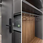 بالإضافة إلى أدوات تحضير القهوة والشاي، يمكن للضيوف المقيمين في هذه الشقة الاستمتاع بالمطبخ مع ثلاجة ومحمصة الخبز والموقد المسطح.